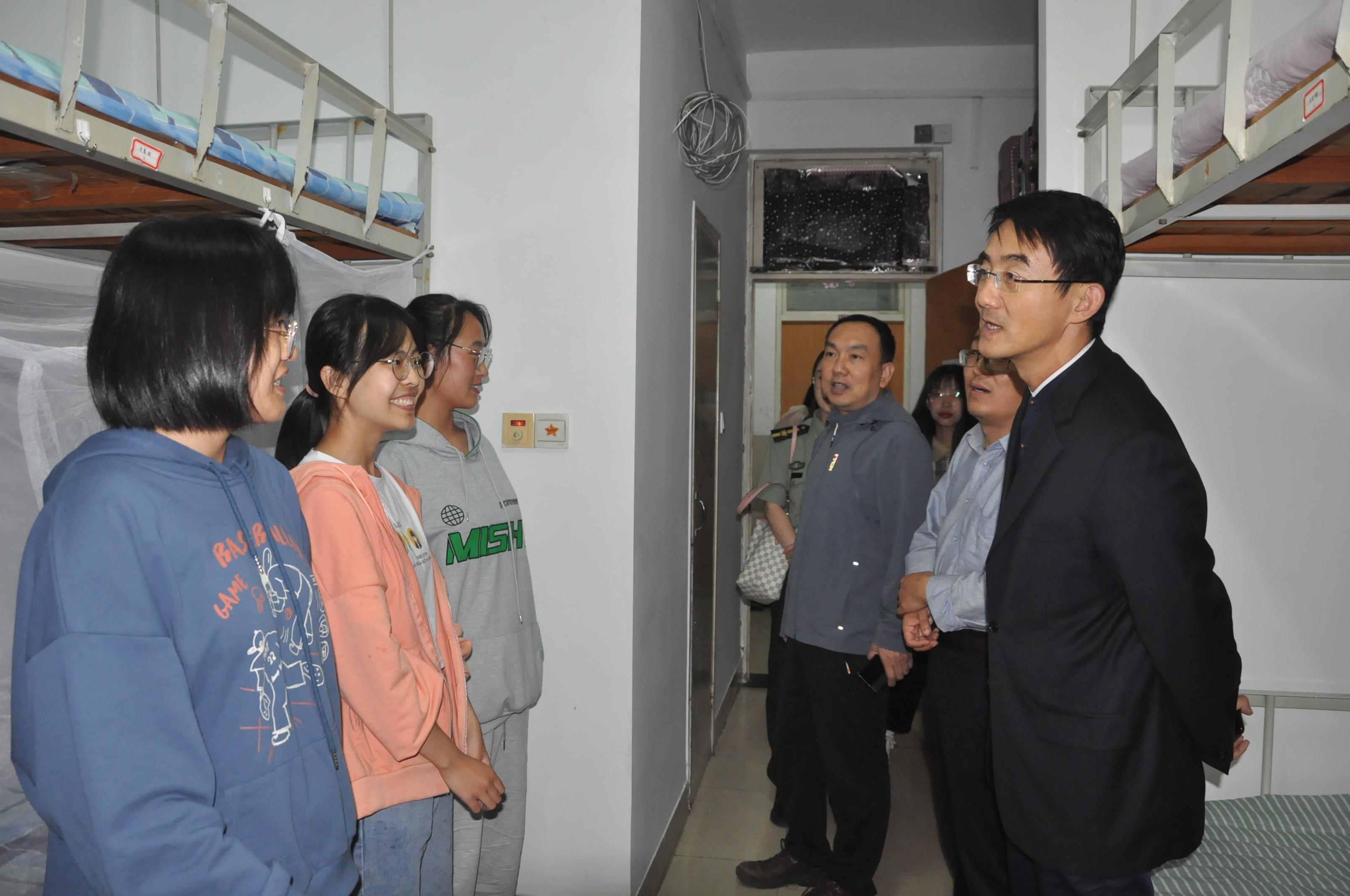 为进一步做好新生入学教育工作,帮助新生更好地适应大学生活,英国365集团党委书记陈卫东、院长张兵、党委副书记、副院长朱红岩、20级新生辅导员赵丽丽老师于10月2日晚来到新生宿舍,向他们送上关心与问候。