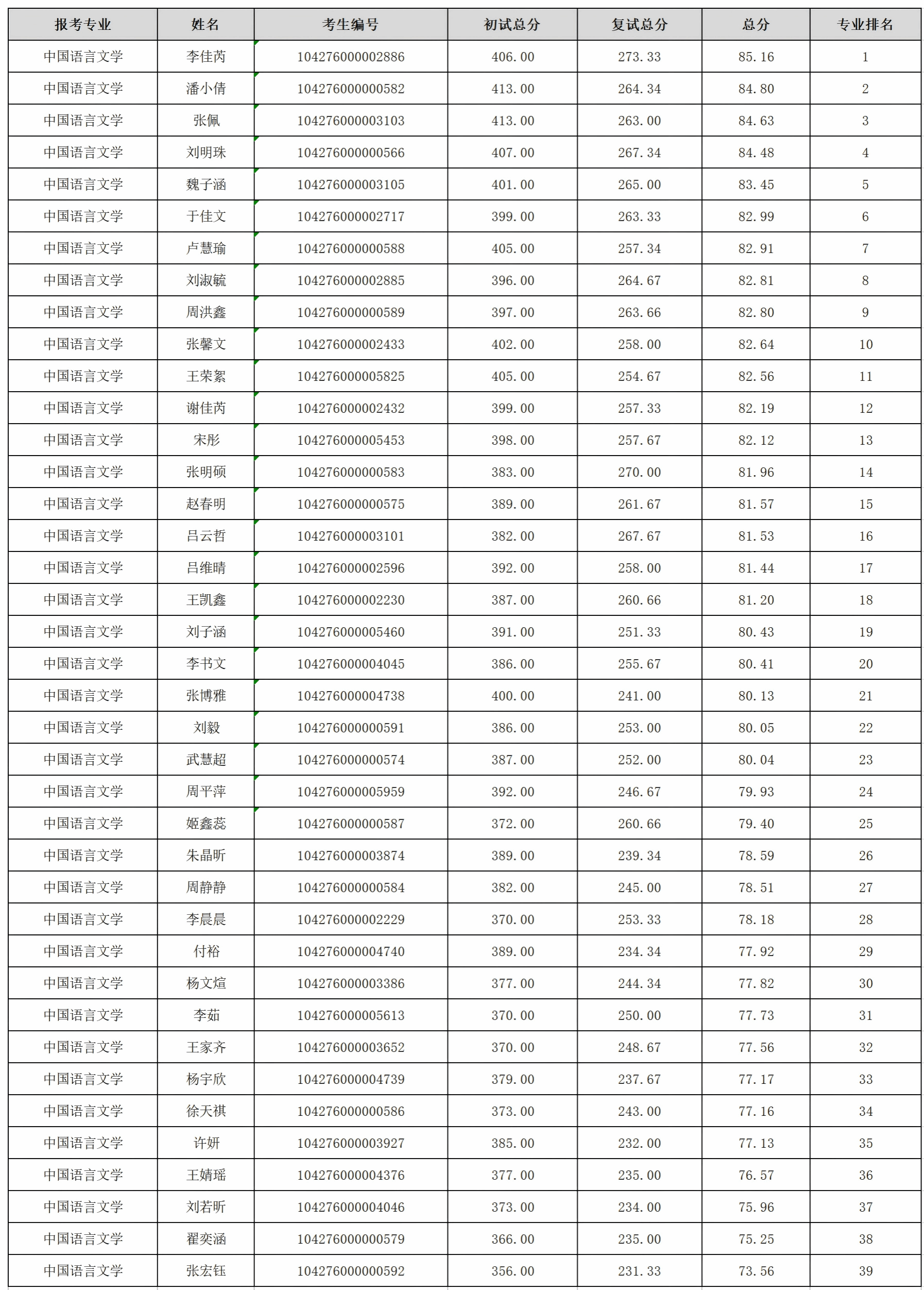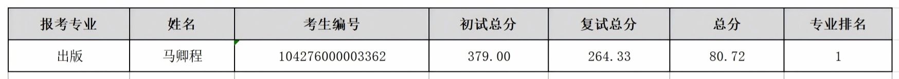 现将(050100)中国语言文学、(045103)学科教学(语文)、(055200)新闻与传播、(055300)出版硕士研究生一志愿批次考生成绩予以公示。