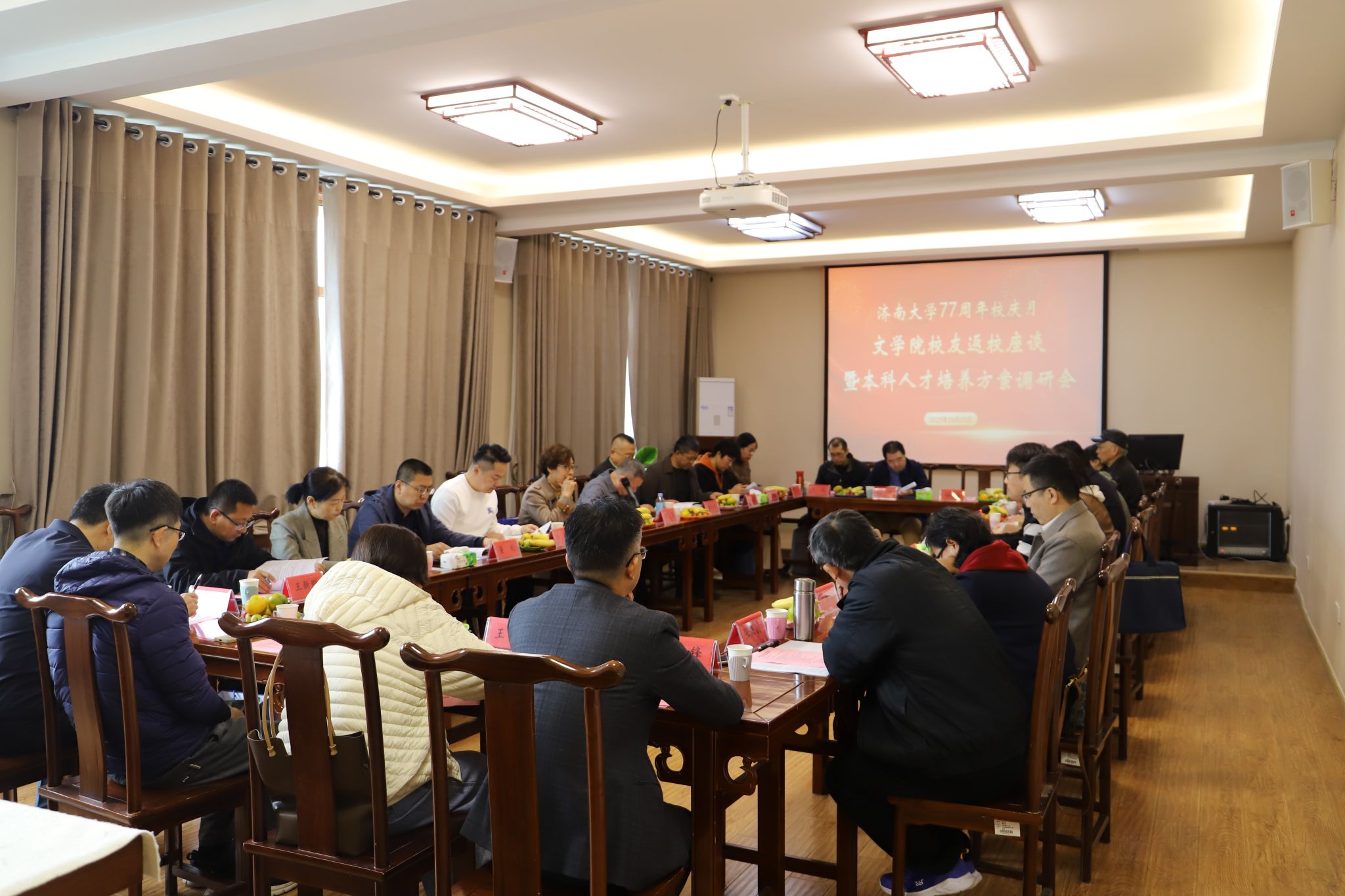 会议下半场聚焦本科人才培养方案修订这一核心议题。院长助理晏青首先介绍了本次培养方案修订的背景。随后,中文系、历史系、传播系系主任张秉国、孙竞、丁捷与广告学专业负责人陈晓洁分别就各专业的建设现状与未来规划作了详细说明。在交流研讨环节,校友们结合自身工作领域和社会需求,对人才培养方案提出了诸多宝贵建议。庞勃、曲静等校友建议,新闻传播专业需夯实学生的文字理论基础,注重培养深厚的人文责任感、经典深度解读与文本细读能力,同时应加强跨学科能力、写作能力与独立思考能力的贯通培养。董钊、韩玉国等校友强调了汉语言文学、历史学专业学生对接新技术与人工智能应用的必要性。刘连军校友结合传媒行业特点,提出应着重培养学生的“笔头、舌头、镜头”能力,强化跨学科素养,以应对多元化社会需求。与会校友还就产学研深度融合、能力导向的课程体系构建、教材改革等方面分享了深刻见解。