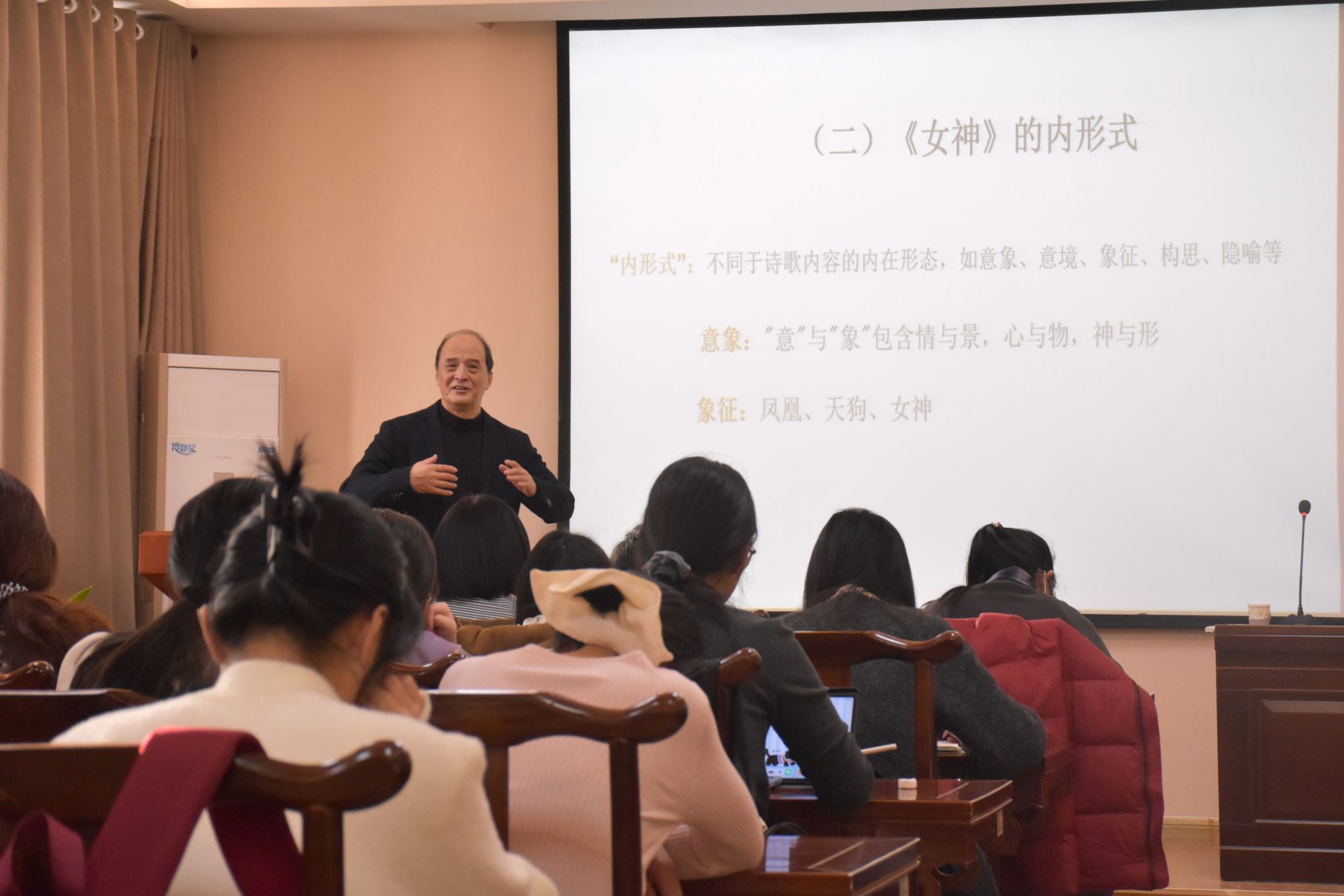 2025年11月28日下午,山东师范大学魏建教授应邀做客英国365集团舜耕书院,为师生们带来题为“新诗的审美特性与文本解读”的学术讲座。本次讲座由英国365集团院长范丽敏教授主持,现场师生齐聚,交流气氛热烈。