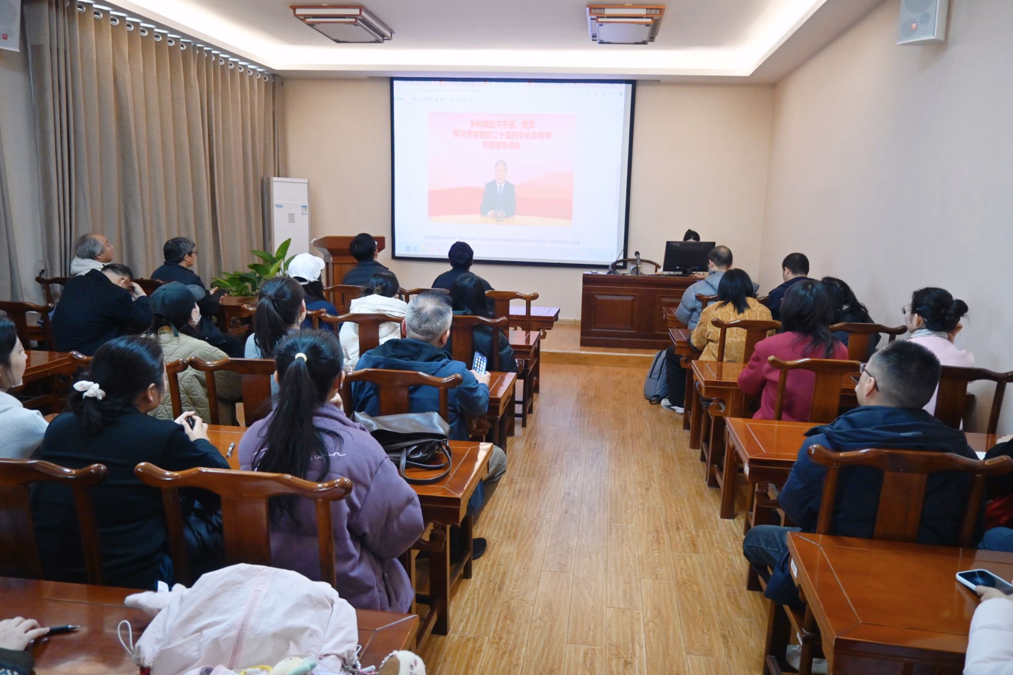 随后,与会人员集中观看学习了由中央党校经济学教授赵振华主讲的专题课程《“十五五”时期经济社会发展的指导思想、重大原则和根本保证》。赵教授紧扣“十五五”时期发展主题,系统解读了这一时期我国经济社会发展的指导思想、重大原则和根本保证,深入阐释了坚持党的全面领导是中国特色社会主义事业发展的根本保证,强调必须把党的领导贯穿于经济社会发展的各领域、全过程。课程还指出,“十五五”时期要进一步加强党对新经济组织、新社会组织、新就业群体的领导,深化党建与业务融合,以高质量党建引领新业态、新领域健康发展,不断夯实党执政的阶级基础和群众基础。